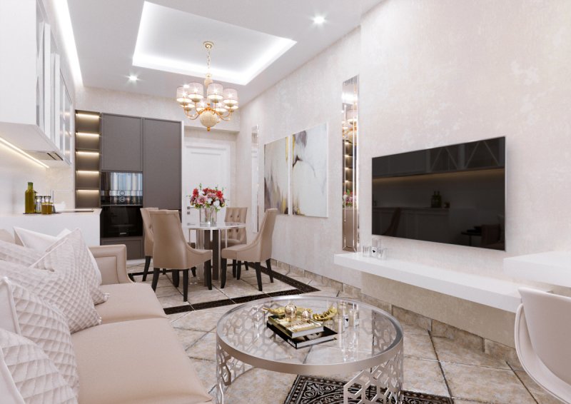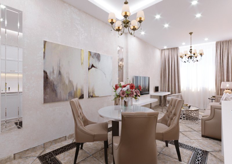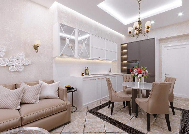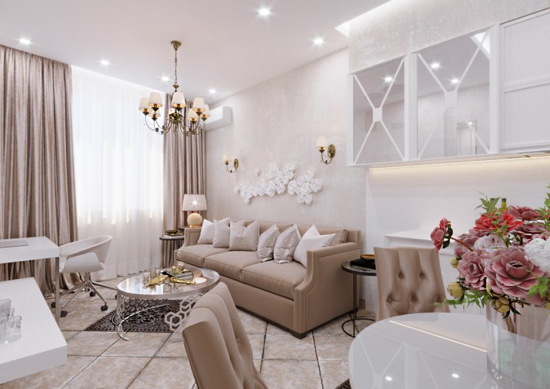 Дизайн однокомнатной квартиры в ЖК "Парадиз" в неоклассическом стиле