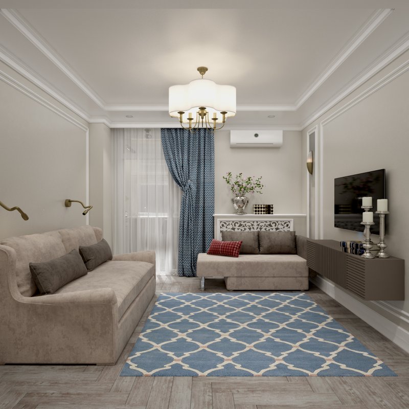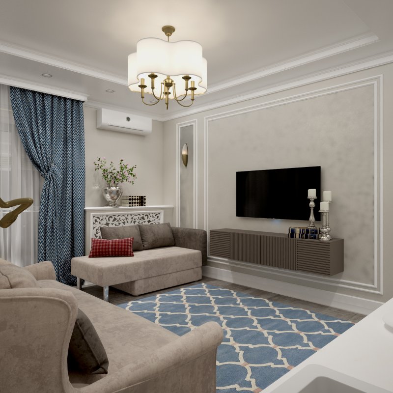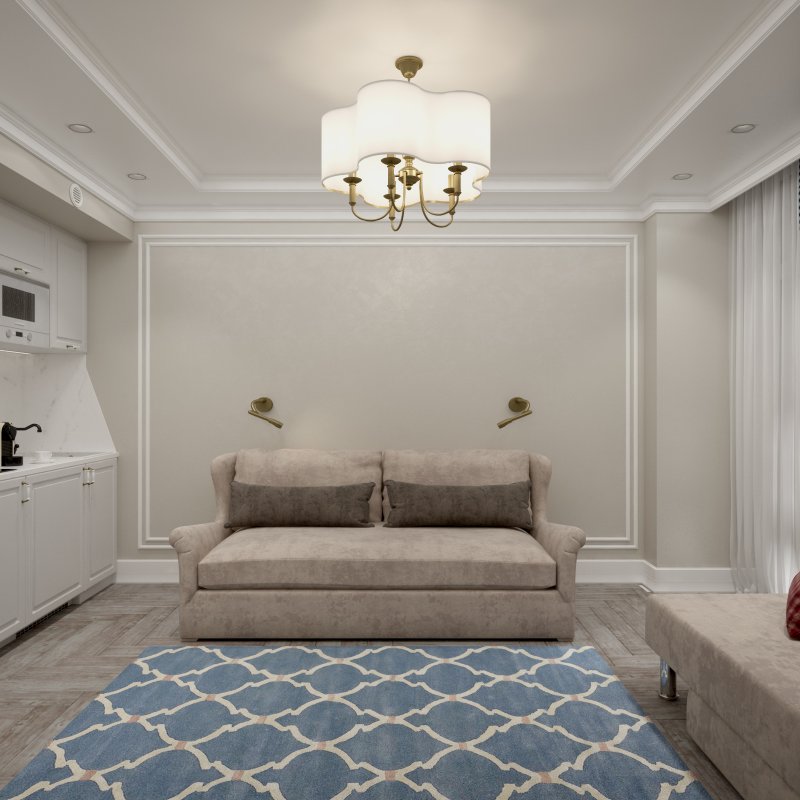 Дизайн студии 28 кв. м в ЖК "Белый ангел" в стиле неоклассика